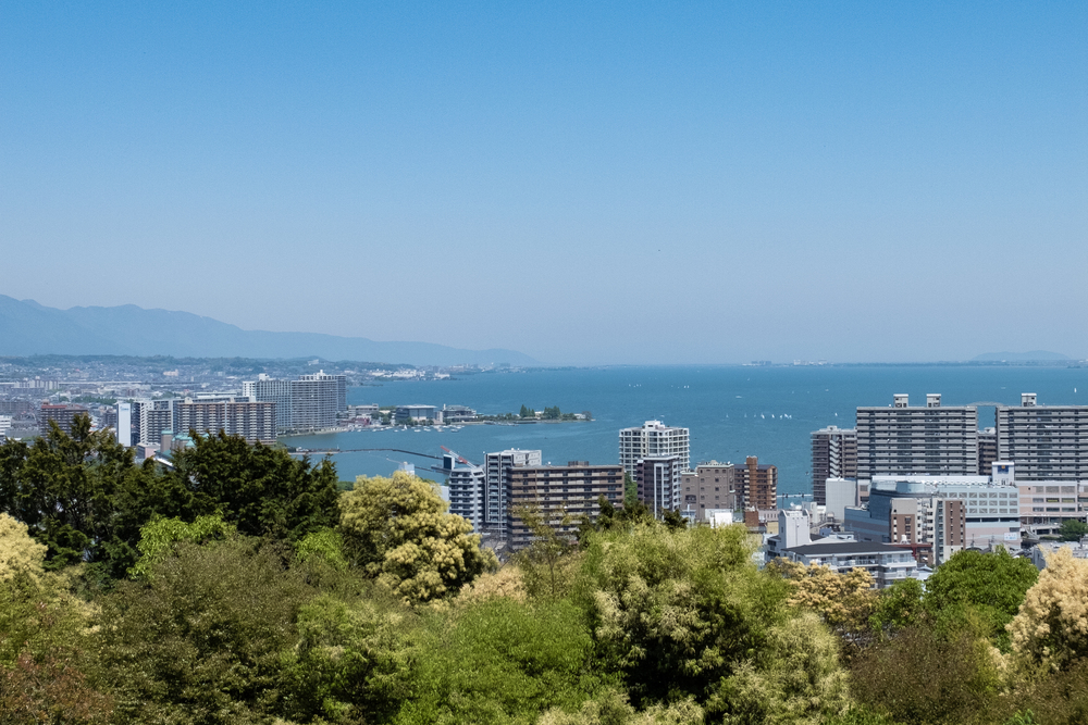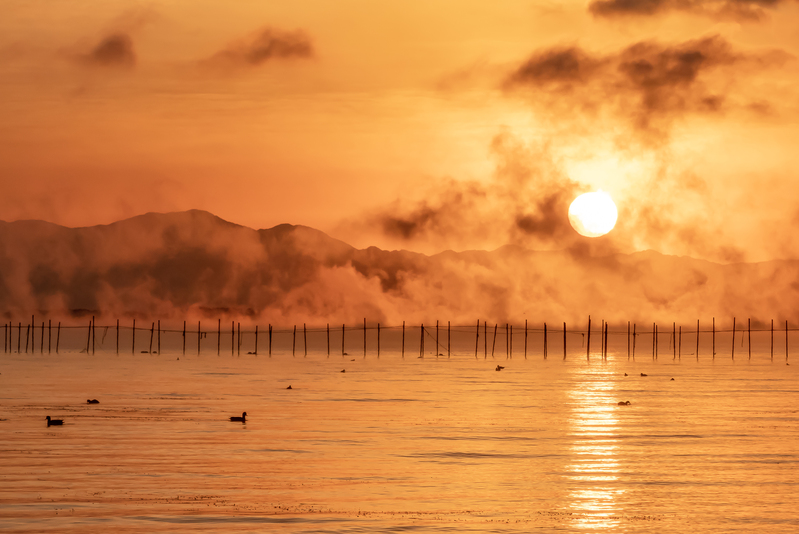 “Yellow rape blossoms coloring the shores of Lake Biwa in winter”.